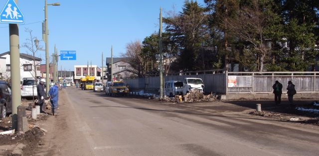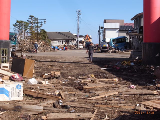 家が流されずにすんだ人は、もくもくと片付けをしています。