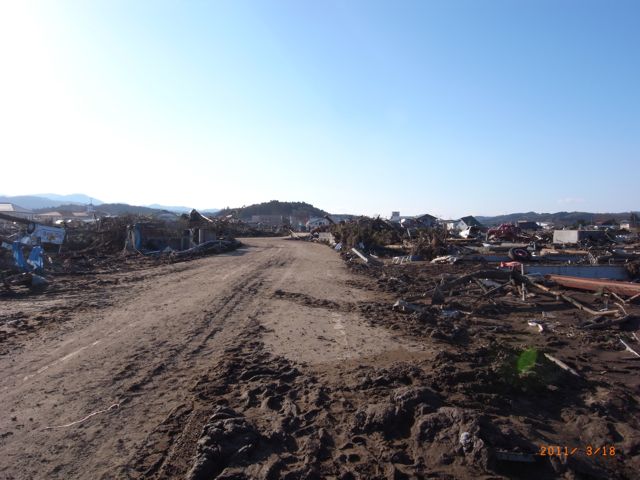 最後にのこった職員2人は、調理場の揚げ物の後始末をし、火の回りの点検をしていた。たまたま迎えにきた父母の声で外に出てみると、津波が堤防を越え集落に迫ってくるのが見える。それで、必死で逃げたという。